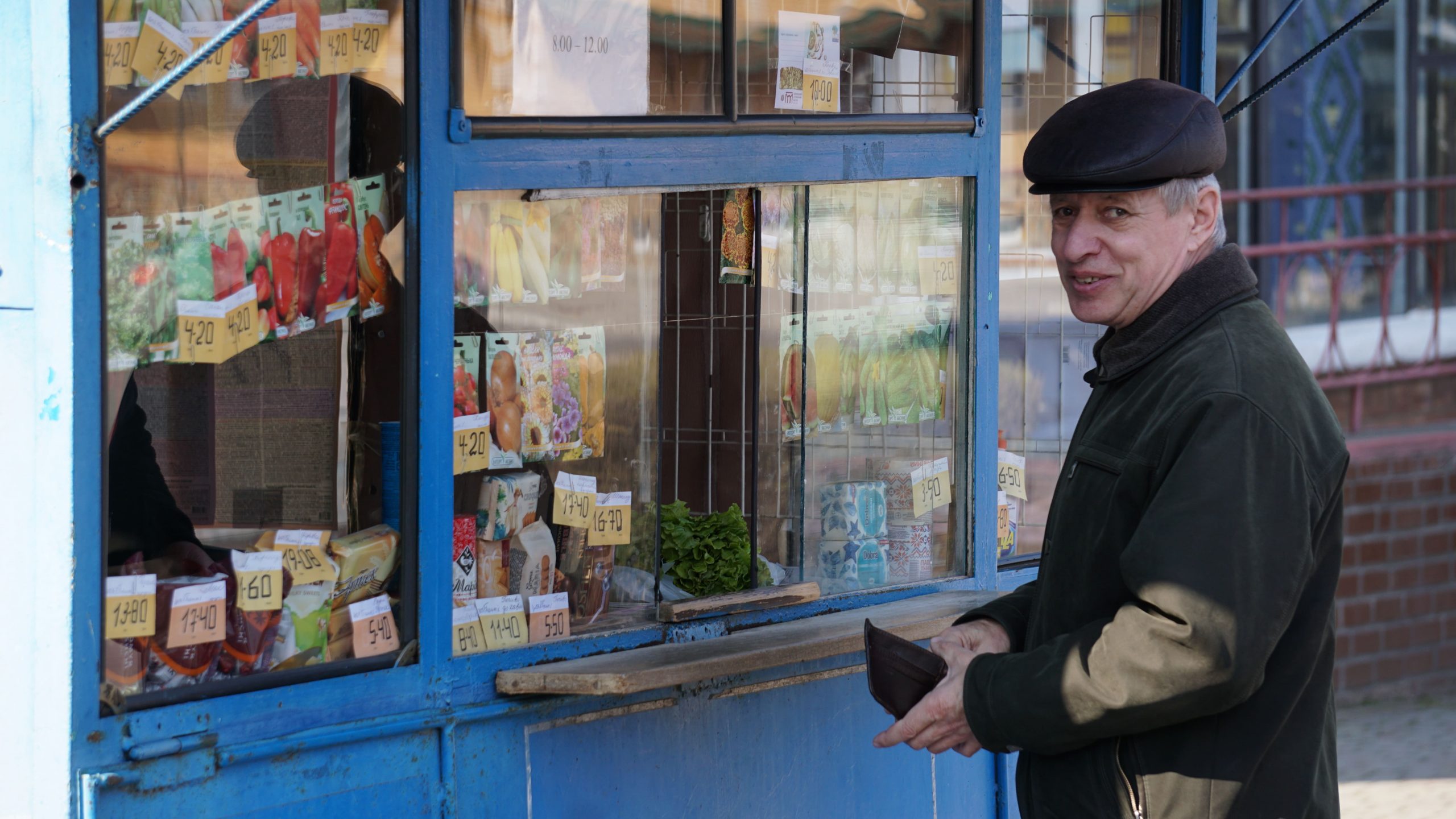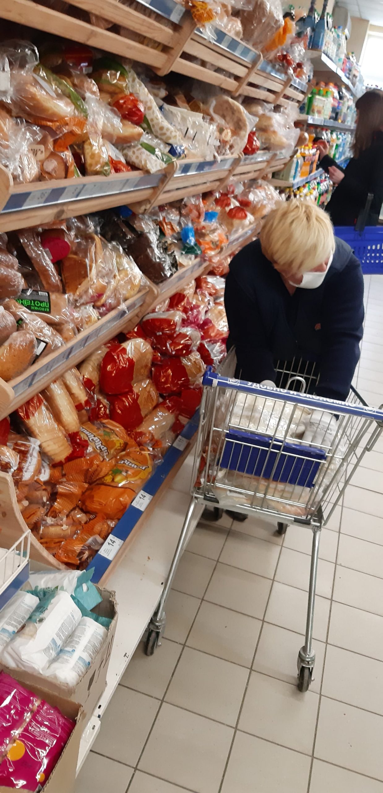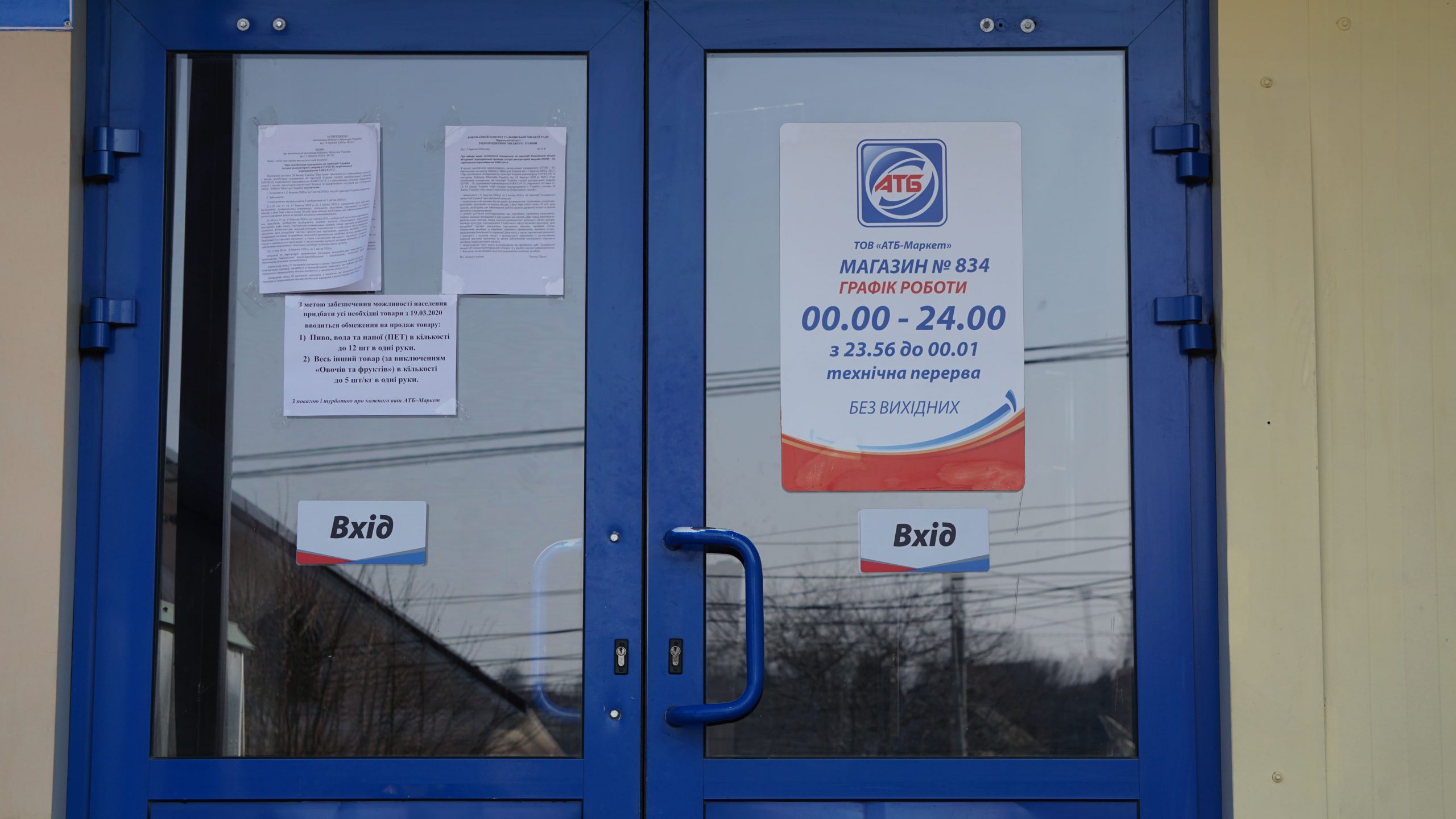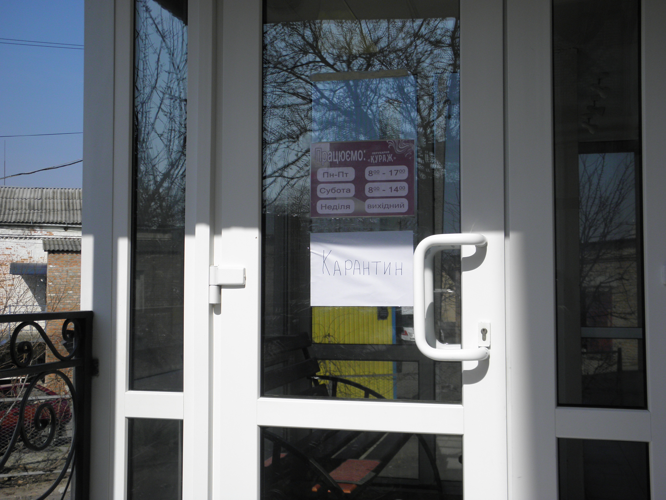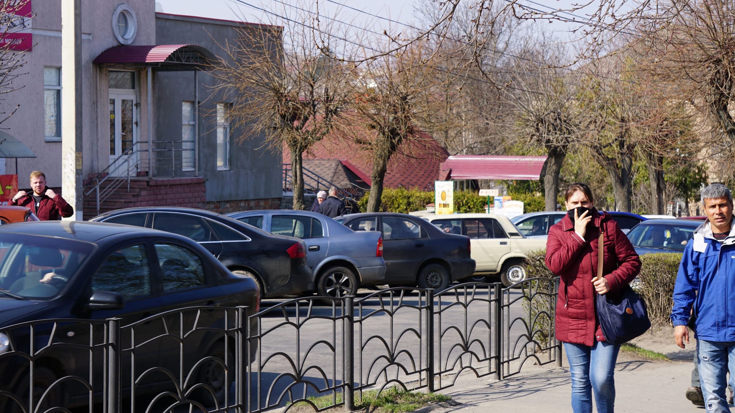 Прямуємо до відділення пошти. Неподалік нього стоять двоє чоловіків, про щось активно говорять, сміються. На вхідних дверях – інструктаж, як вберегтися від поширення коронавірусу, як дотримуватися дистанції. На підлозі біля віконечок обслуговування – жовті мітки, аби люди не заходили за них і, таким чином, була дотримана дистанція. Таке прохання надрукували та повісили на кожному з віконечок. Будинок культури також зачинений. Якась жіночка підходить, смикає двері – закрито. У магазині «Єва» налічуємо чоловік з десять, не більше. Продавчині одягли маски, інші працівники, що розкладають товар на полицях, теж з масками. Саме роблять викладку пральних порошків та іншої побутової хімії. У магазині поріділи полиці із серветками та туалетним папером. У «АТБ», що навпроти, просто так ще з учорашнього вечора не зайдеш. Під дверима – черга з кількох людей. Кажуть, що охоронці пускають так, аби у торговому залі було одночасно не більше 10-ти людей. Тому люди чекають, поки хтось не вийде назовні. Коли до нас черга майже дійшла, до магазину, як поперед батька в пекло, влетів якийсь чоловік. Хотів, було, заскочити всередину без черги, але, побачивши охоронців у масках, рвонув назад. Надворі довго скаржився: на ці черги, на кількість людей і на владу: «Чому пускають тільки по 10? Чому не по 5, 3? Краще по 1-му запускати! Хто ці закони придумав?» Нарешті до «АТБ» потрапляємо і ми. У залі на полицях є все, окрім м’яса. Хліба також вдосталь. Дещо «підчистили» полиці з макаронами, цукром, сіллю, крупами (особливо гречкою). Дві жіночки набирають у торбинку яйця з лотків. Біля полиць з побутовою хімією немає нікого, люди йдуть переважно за продуктами.