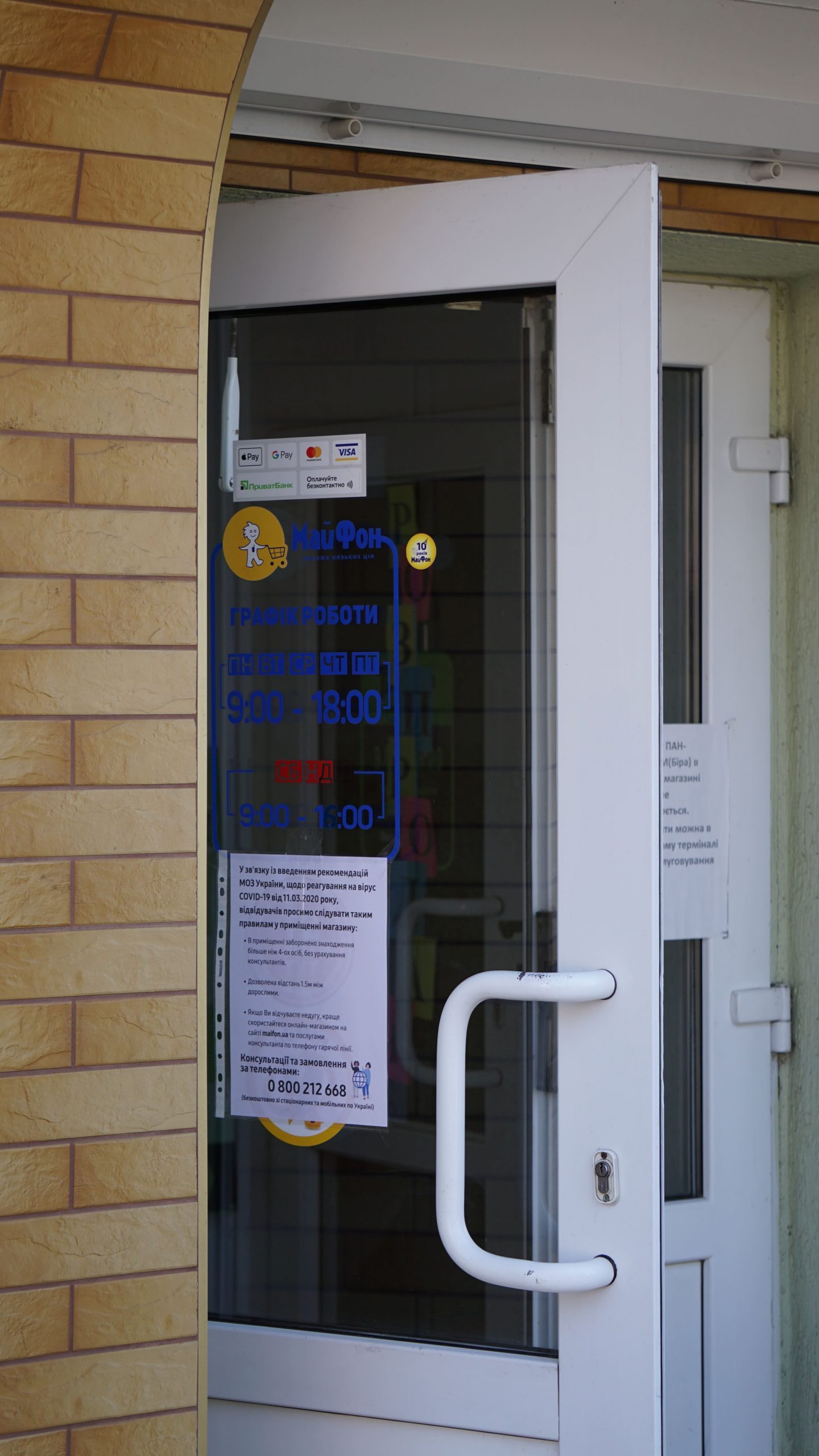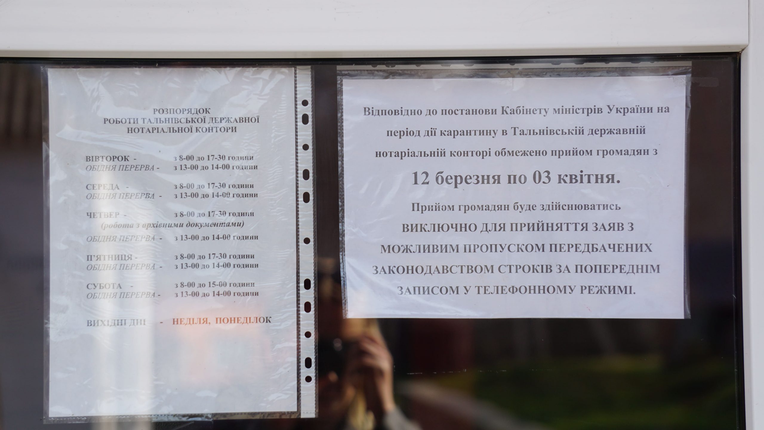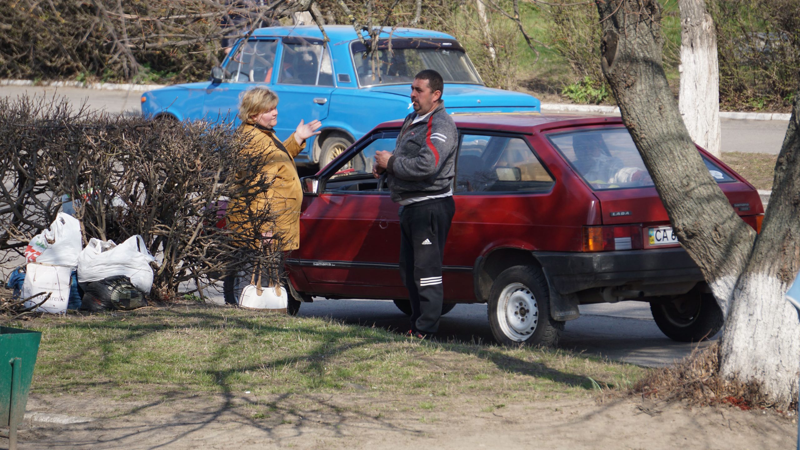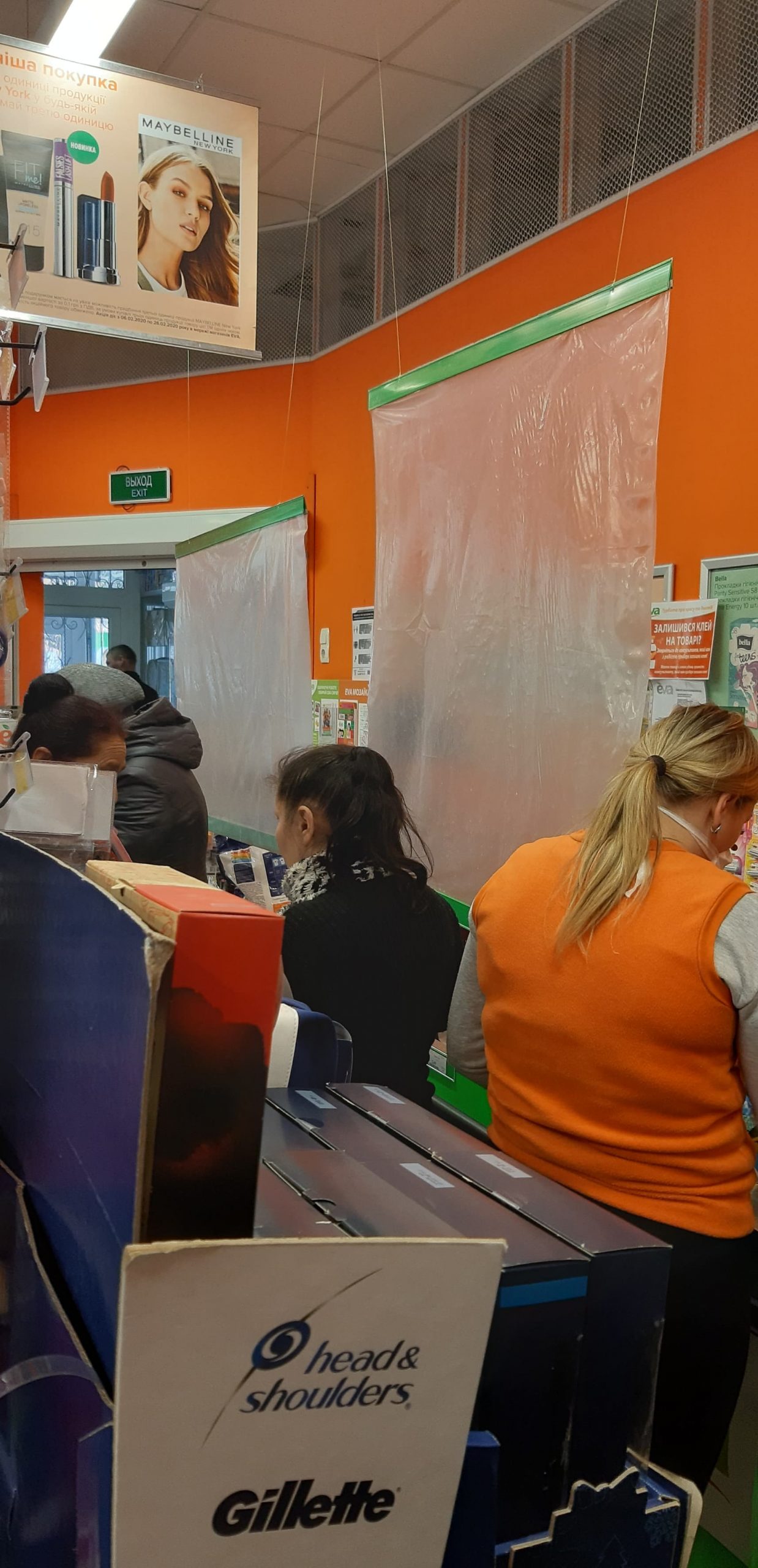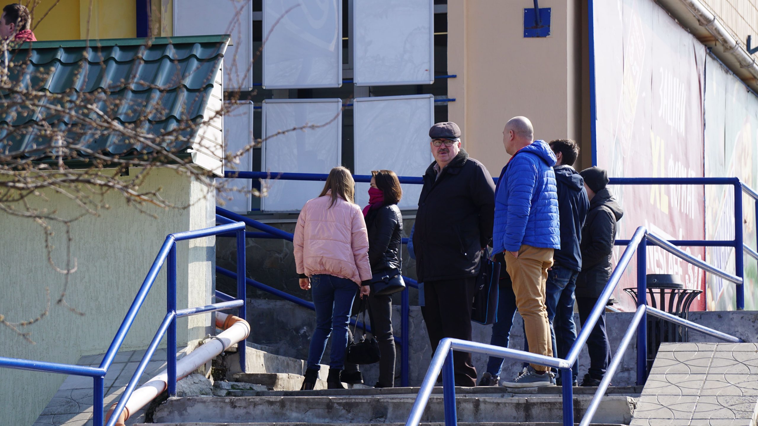 Прямуємо до відділення пошти. Неподалік нього стоять двоє чоловіків, про щось активно говорять, сміються. На вхідних дверях – інструктаж, як вберегтися від поширення коронавірусу, як дотримуватися дистанції. На підлозі біля віконечок обслуговування – жовті мітки, аби люди не заходили за них і, таким чином, була дотримана дистанція. Таке прохання надрукували та повісили на кожному з віконечок. Будинок культури також зачинений. Якась жіночка підходить, смикає двері – закрито. У магазині «Єва» налічуємо чоловік з десять, не більше. Продавчині одягли маски, інші працівники, що розкладають товар на полицях, теж з масками. Саме роблять викладку пральних порошків та іншої побутової хімії. У магазині поріділи полиці із серветками та туалетним папером. У «АТБ», що навпроти, просто так ще з учорашнього вечора не зайдеш. Під дверима – черга з кількох людей. Кажуть, що охоронці пускають так, аби у торговому залі було одночасно не більше 10-ти людей. Тому люди чекають, поки хтось не вийде назовні. Коли до нас черга майже дійшла, до магазину, як поперед батька в пекло, влетів якийсь чоловік. Хотів, було, заскочити всередину без черги, але, побачивши охоронців у масках, рвонув назад. Надворі довго скаржився: на ці черги, на кількість людей і на владу: «Чому пускають тільки по 10? Чому не по 5, 3? Краще по 1-му запускати! Хто ці закони придумав?» Нарешті до «АТБ» потрапляємо і ми. У залі на полицях є все, окрім м’яса. Хліба також вдосталь. Дещо «підчистили» полиці з макаронами, цукром, сіллю, крупами (особливо гречкою). Дві жіночки набирають у торбинку яйця з лотків. Біля полиць з побутовою хімією немає нікого, люди йдуть переважно за продуктами.
