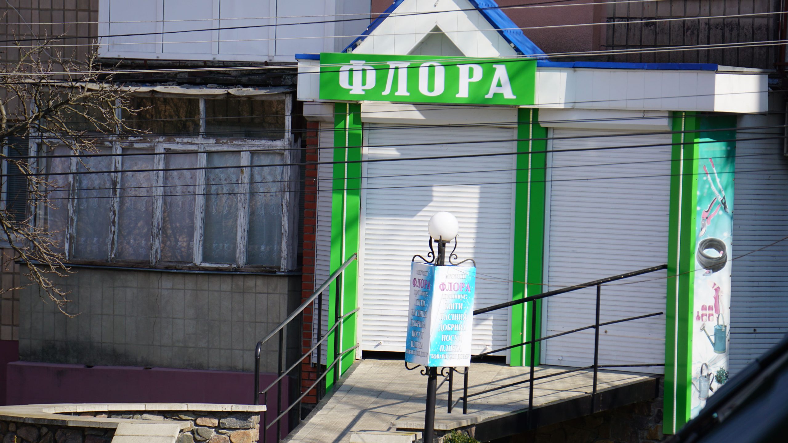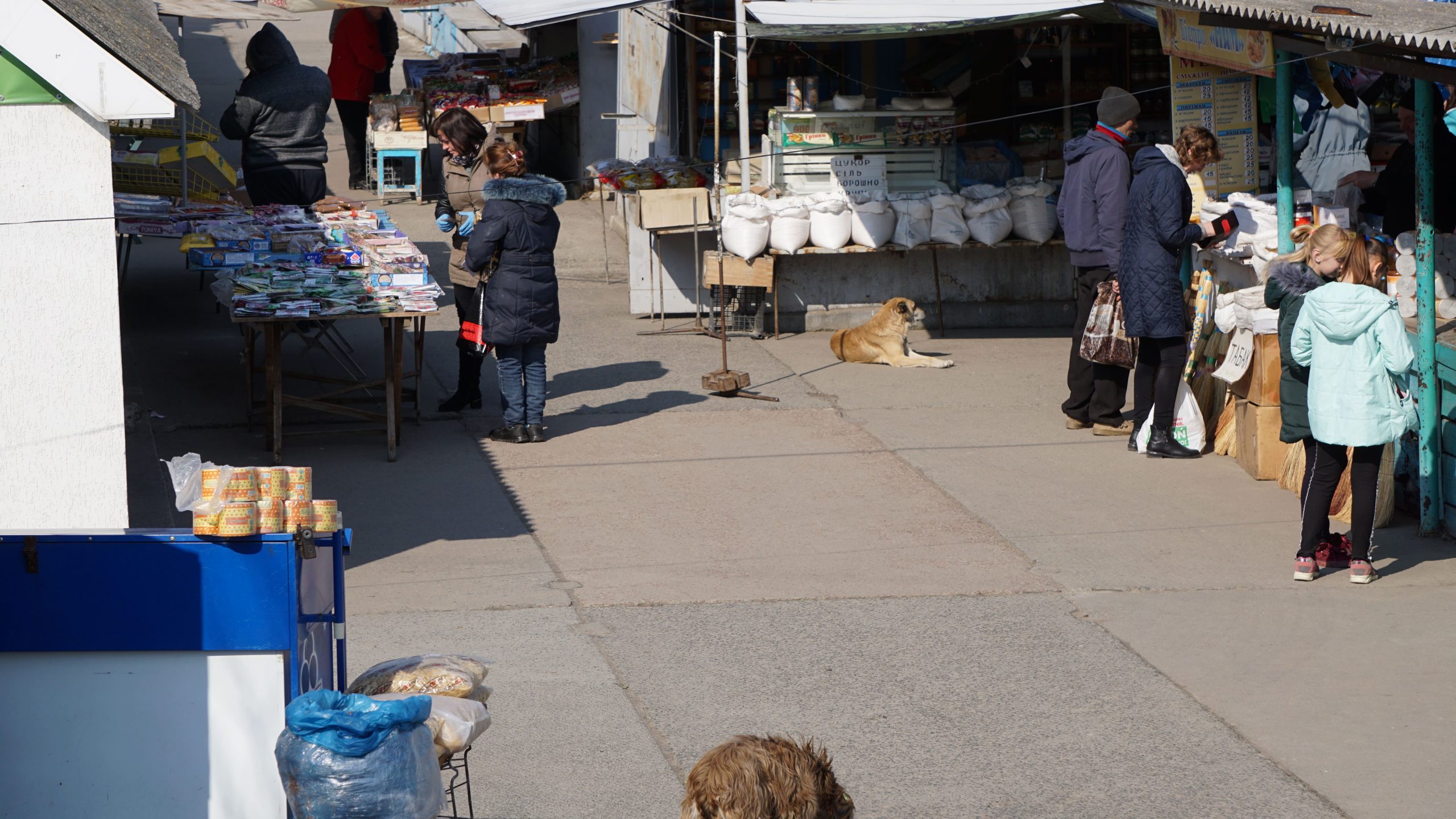 Йдемо до магазинчиків, які знаходяться на базарі. Все зачинено. На скутері заїжджає немолода жіночка з маскою на обличчі. Ставить «залізного», мабуть, скупитися приїхала. Дитячий розважальний центр «Фоксіленд», що знаходиться відразу за базаром, не працює. Як і дитячий магазин «Оазис», двері якого зустрічають нас вивіскою «Карантин».
