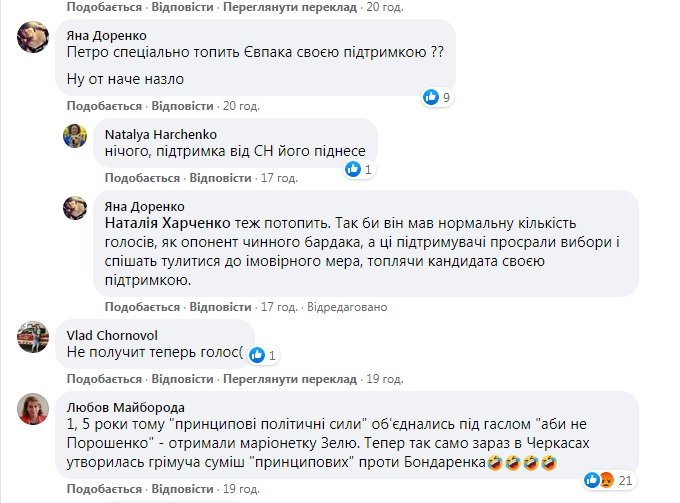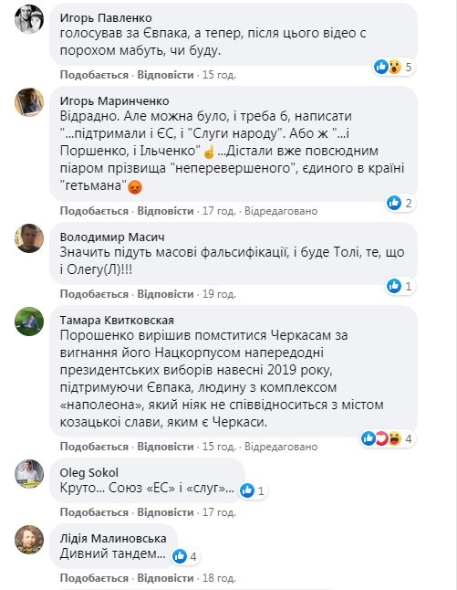 Про імовірні причини неприроднього симбіозу в Черкасах ми вже писали: нікого із Президентів, ні колишнього, ні нинішнього, не влаштовує чинний мер Анатолій Бондаренко, бо має власну думку і може жорстко її відстоювати. А Віктор Євпак без чітко вираженої політичної позиції – влаштовує всіх. То він називає Порошенка “заробітчанином на крові”, то радісно з ним обіймається, то бігає за “Слугами народу”, щоб стати їхнім висуванцем, то йде під прапорами “Голосу”, який гостро критикує корупцію у надрах пропрезидентської політсили…