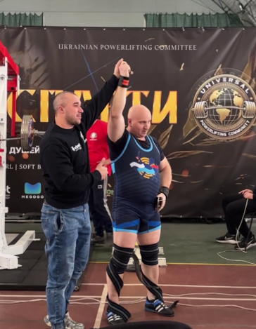 2) Павленко Андрій – категорія майстри (45-49), аматори, вагова до 90 кг: пауерліфтинг (582,5 кг) – 1 місце; двоборство (377,5 кг) – 1 місце; станова тяга (232,5 кг) – 1 місце; жим лежачи (145 кг) – 1 місце; тренер Артур Солін.