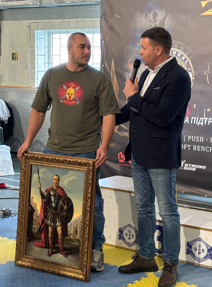 Анатолій Миколайович привітав учасників, побажав успіхів, високих результатів та нових рекордів. А ще, він передав вітання від Григорія Петровича Душейка та клубу «Черкаські Богатирі» – і вручив картину організатору турніру Олегу Литвиненку, як знак поваги за заснування та постійне проведення цього турніру.