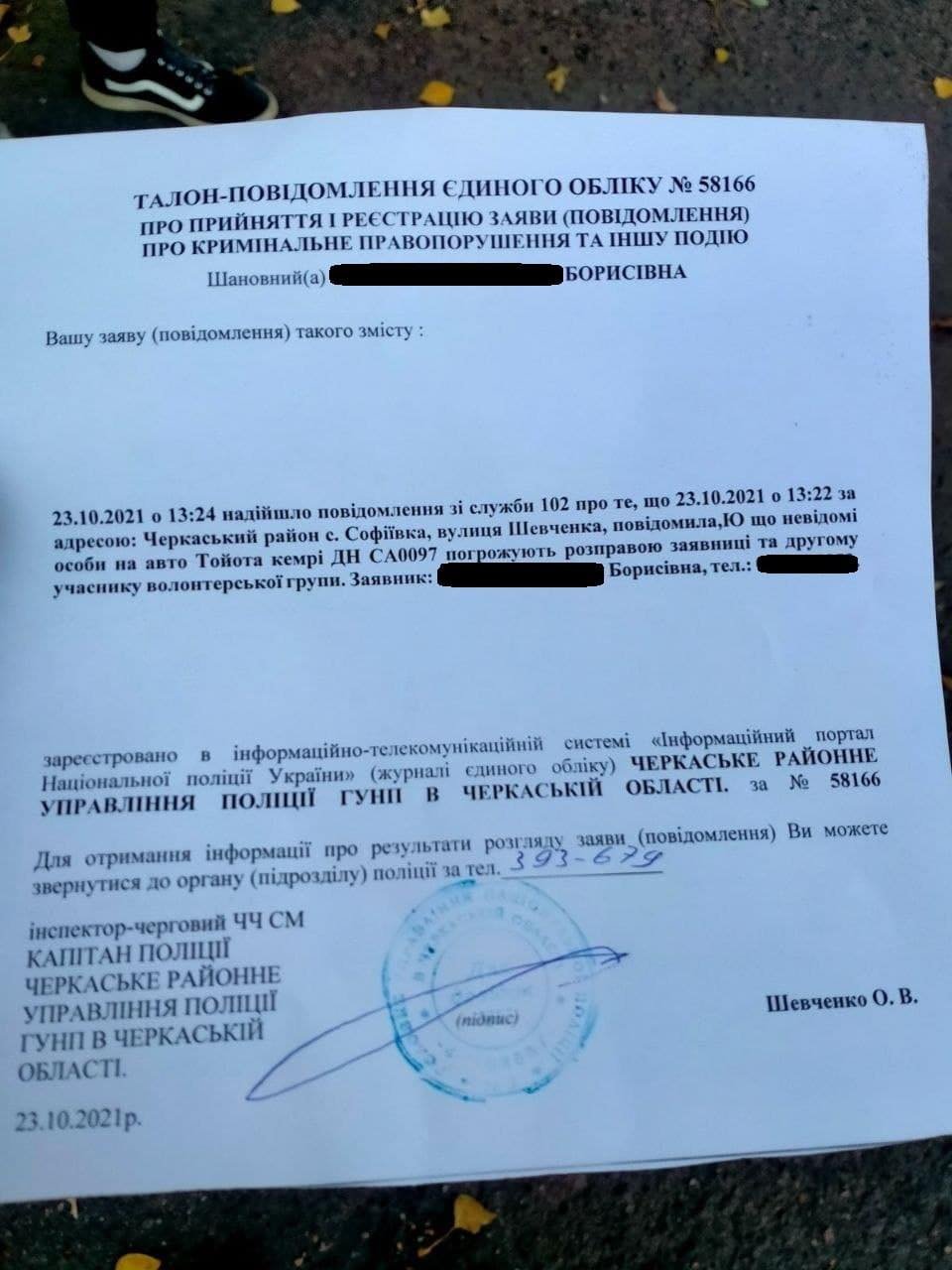 Поки готували публікацію, стало відомо, що заяву про напад Голуба і його компаньйона у волонтерки у Черкаському райвідділі прийняли, зареєстрували і запропонували почекати. Наскільки оперативно правоохоронці вестимуть розслідування – не ясно, але судячи з того, як вони відреагували на виклик про розбій, то явно чекати доведеться аж до японської паски.