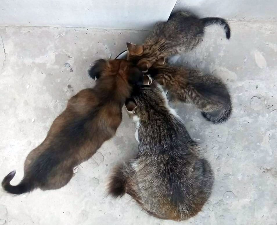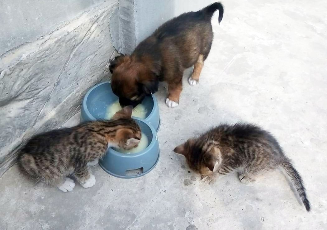 Справжнє диво трапилося, коли сусідка з чоловіком привезла до свого дому цуценят. Маму-собачку збив водій за кермом машини, а малечу вони знайшли і вирішили не залишати на призволяще. Виходили поранену собаку, а діток-цуценят роздали небайдужим людям. Одного щасливчика забрали і ми. Назвали цього маленького колобка – Боня. Такий кумедний був, а Кішка-Муся, яка на той час мала кошенят, прийняла його за свою дитину. Трохи інакшу на вид, але таку ж рідну. Облизувала його, як і кошенят, їли вони всі з однієї миски і дивилися ми на це, невтомно милуючись.
