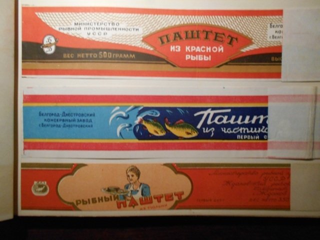 Мені допоміг щасливий випадок у вигляді альбому 1949 року, подарованого цінителем нетенденційної місцевої історії Василем Титаренком. У ньому близько сотні зразків етикеток, замовлених в основному Міністерством харчової промисловості, і здебільшого – рибних. «Севрюга в томатном соусе», «Паштет из красной рыбы», «Осетр в масле»… Чимало алкоголю: від «Спотикача» і «Порічкового десертного» до «Зубровки» і «Тминной горькой». З огляду на ексклюзивність першоджерела, саме його кілька сторінок використав у якості ілюстрацій до статті.