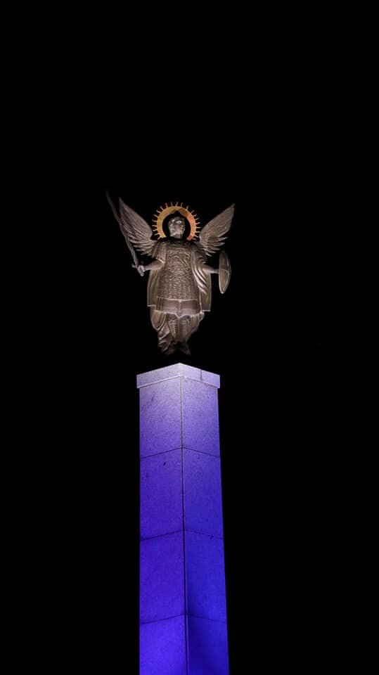 Під виконання Гімну України алея Слави та монумент засяяли синьо-жовтими кольорами.