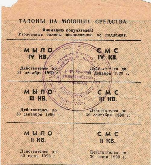 Провісниками розпаду СРСР стали талони на промислові товари, до категорії яких потрапило й мило. Зате саме тоді, у 1989-1990-х роках, з’явився західноєвропейський імпорт цієї групи: пральні порошки, шампунь, мило, зубна паста. Все це добро спочатку навіть більше ніби як колекціонувалося, а конкретно мило перший рік-півтора працювало у шафах і комодах як саше, а вже потім за прямим призначенням.