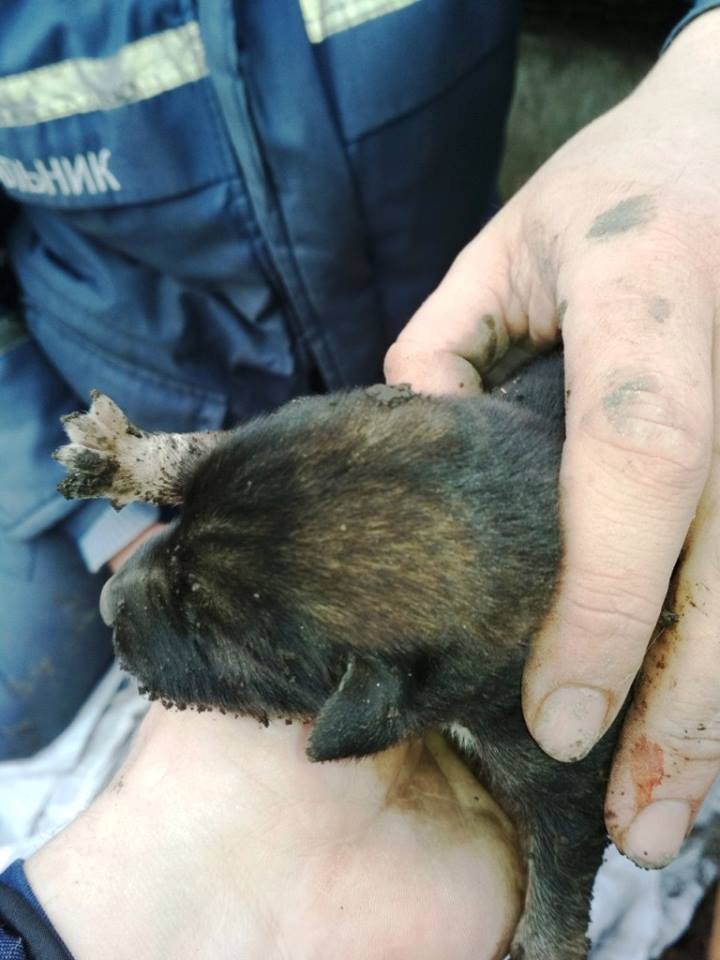У Чорнобаї рятувальники дістали з-під бетонних блоків 8 новонароджених цуценят.