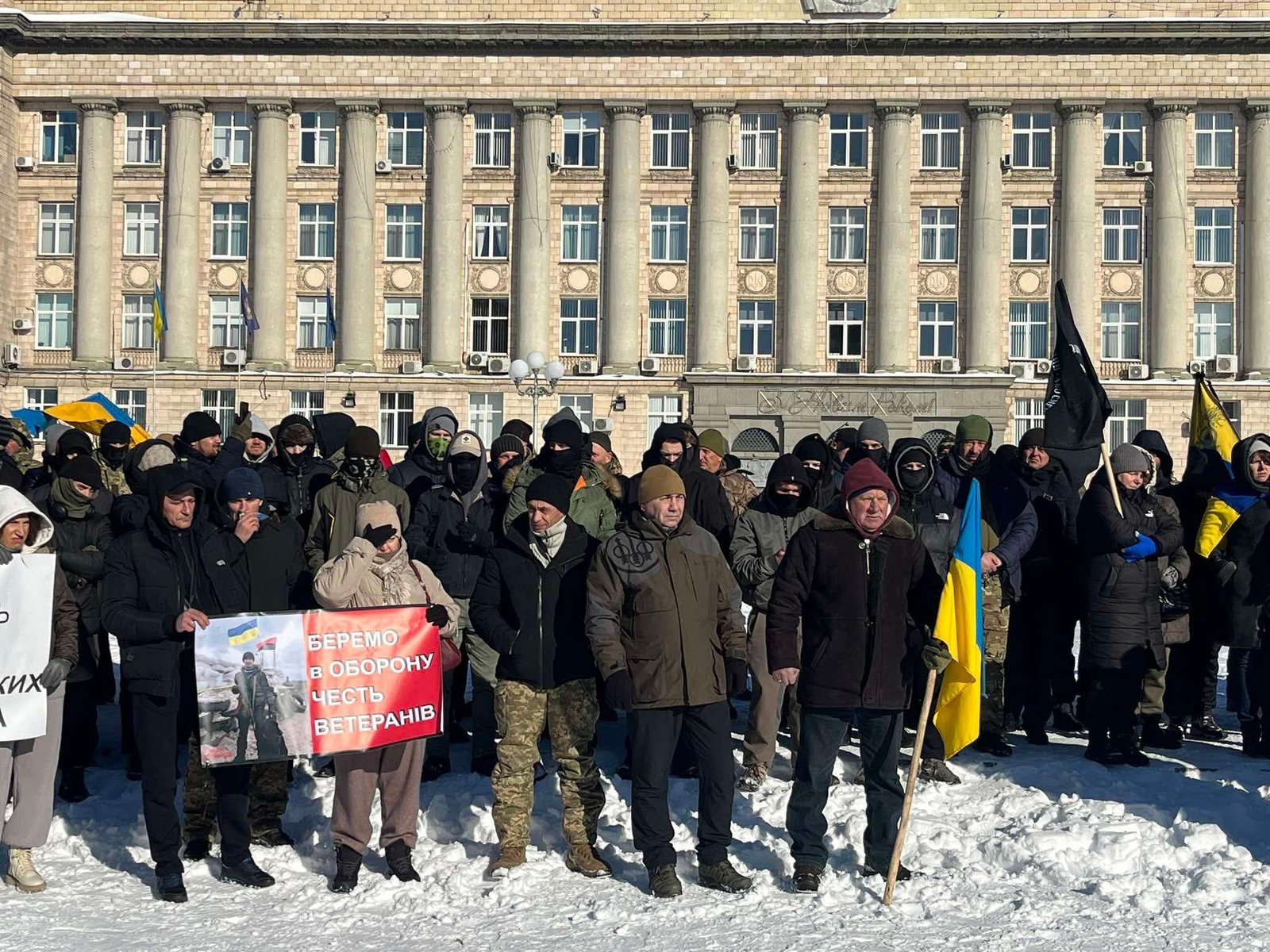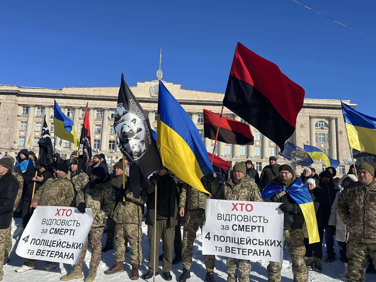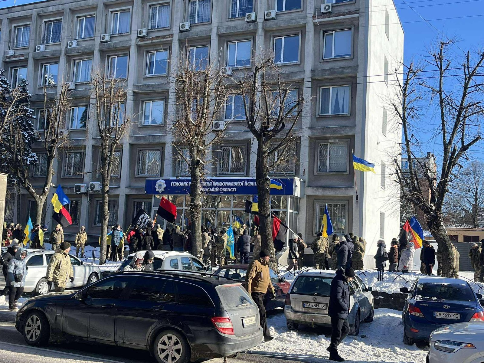 Сьогодні, в неділю 1 лютого, кілька сотень ветеранів війни з усієї області зібрались у Черкасах на Соборній площі, вимагаючи відставки начальника Черкаського обласного ГУ НП Олега Гудими.