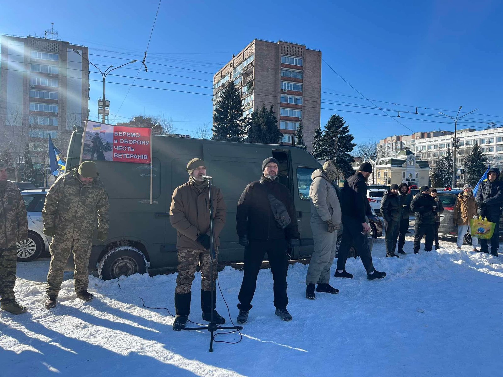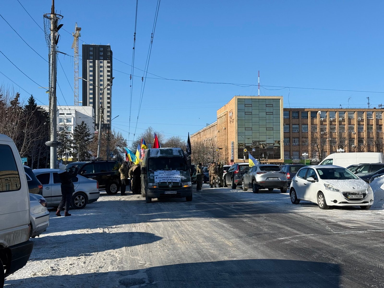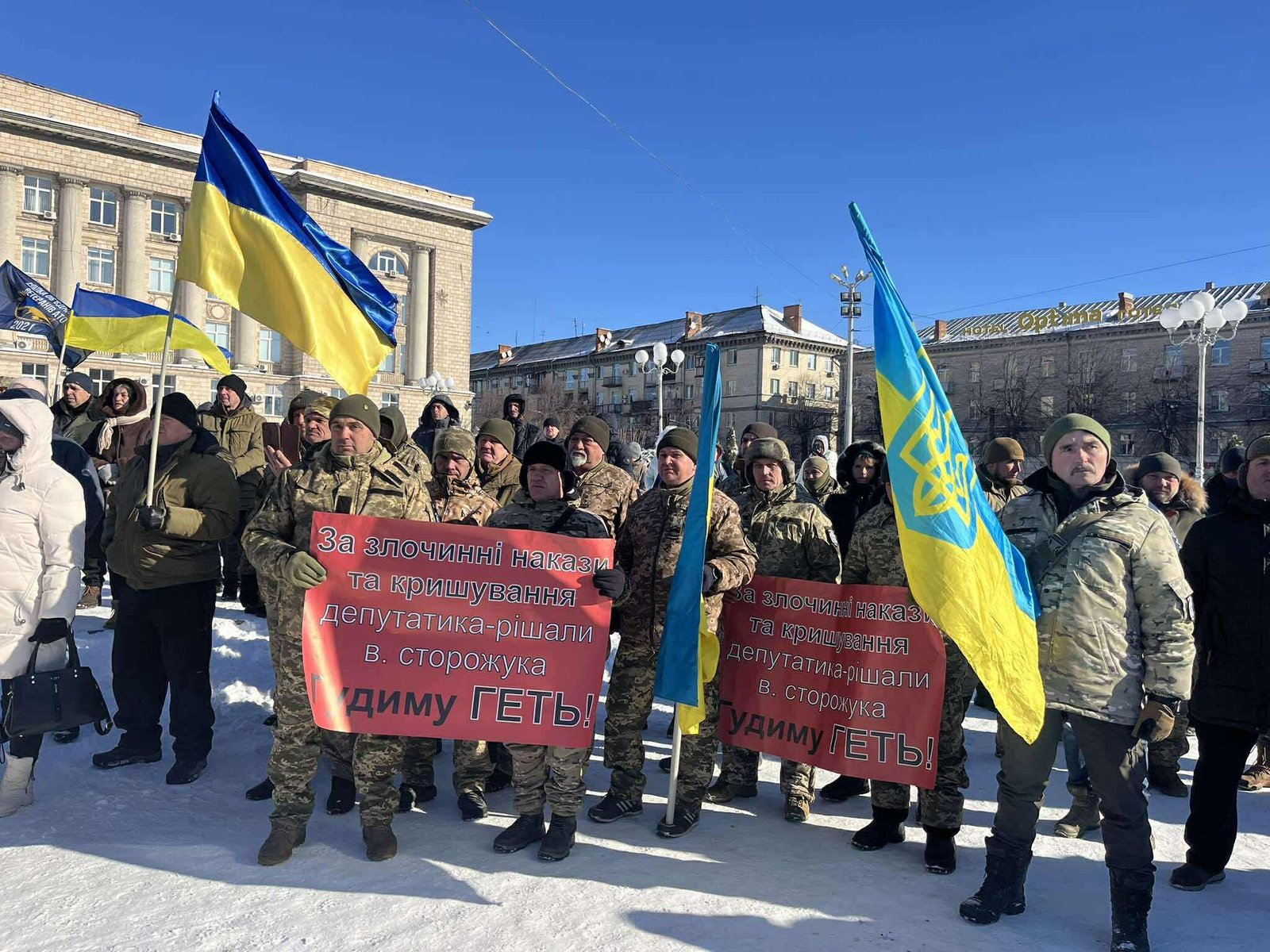Сьогодні, в неділю 1 лютого, кілька сотень ветеранів війни з усієї області зібрались у Черкасах на Соборній площі, вимагаючи відставки начальника Черкаського обласного ГУ НП Олега Гудими.