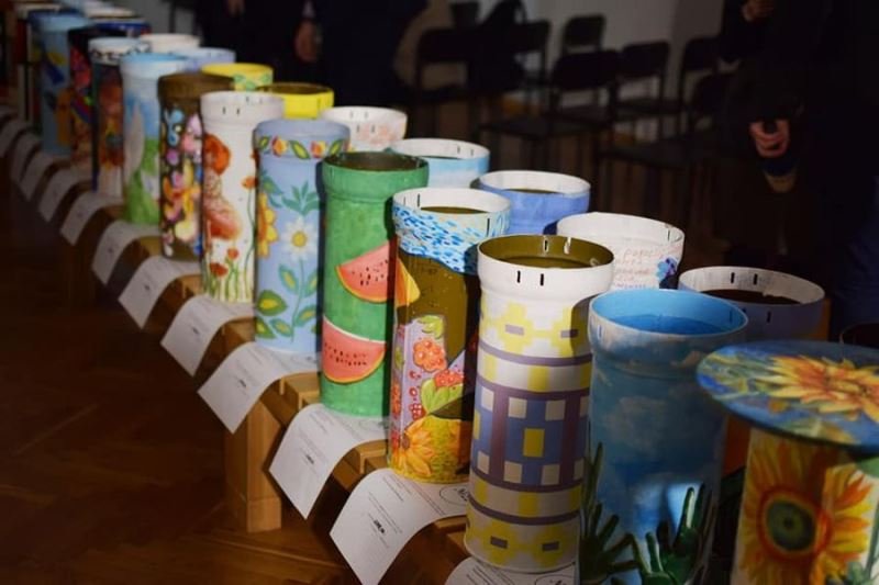 На тубусах від танкових снарядів – витвори мистецтва. На благодійному аукціоні в Черкасах продавали арт-об’єкти, створені учнями та викладачами Черкаської дитячої художньої школи, аби зібрати на допомогу українським військовим. Про це повідомляє пресслужба Черкаської ОВА.