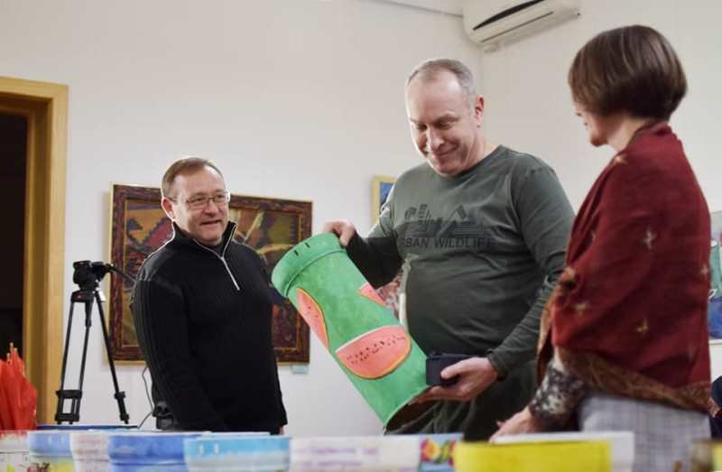 – Коли об’єднується волонтерство і творчість, то навіть артефакти війни можуть працювати на користь наших захисників, – відзначив начальник Черкаської ОВА Ігор Табурець. – На тубусах від танкових снарядів наші митці зобразили те, що болить і чого прагнуть найбільше. Залюбки долучився до благодійного аукціону. Мій лот – «херсонський» кавун.