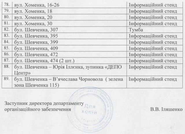 У відповідному рішенні департаменту житлово-комунального комплексу  доручено забезпечити обладнання стендів, дощок оголошень для розміщення матеріалів передвиборної агітації у відведених місцях. А також – забезпечити зняття передвиборних агітаційних матеріалів з 24 години 29 березня 2019 року.