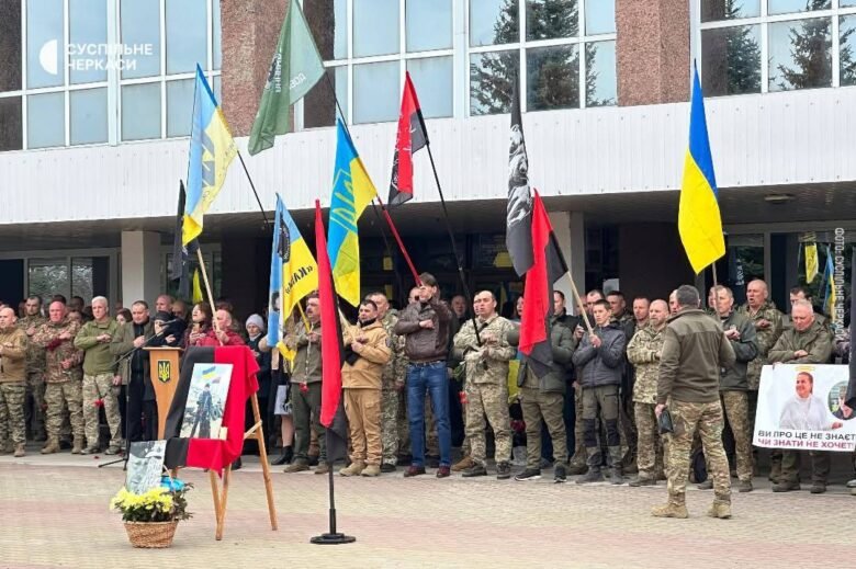 Сьогодні у Корсуні-Шевченківському прощаються із ветераном Сергієм Русіновим, який загинув у перестрілці з поліцією. У центрі містечка зібралось кілька сотень його побратимів із різних куточків області та місцеві жителі.