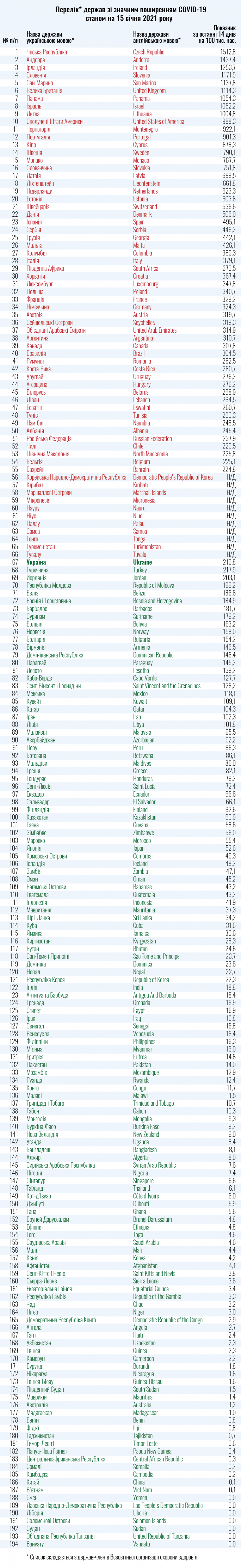 Міністерство охорони здоров’я України оновило список країн “червоної” та “зеленої” зон – із урахуванням кількості активних випадків коронавірусної хвороби COVID-19 на 100 тис. населення..