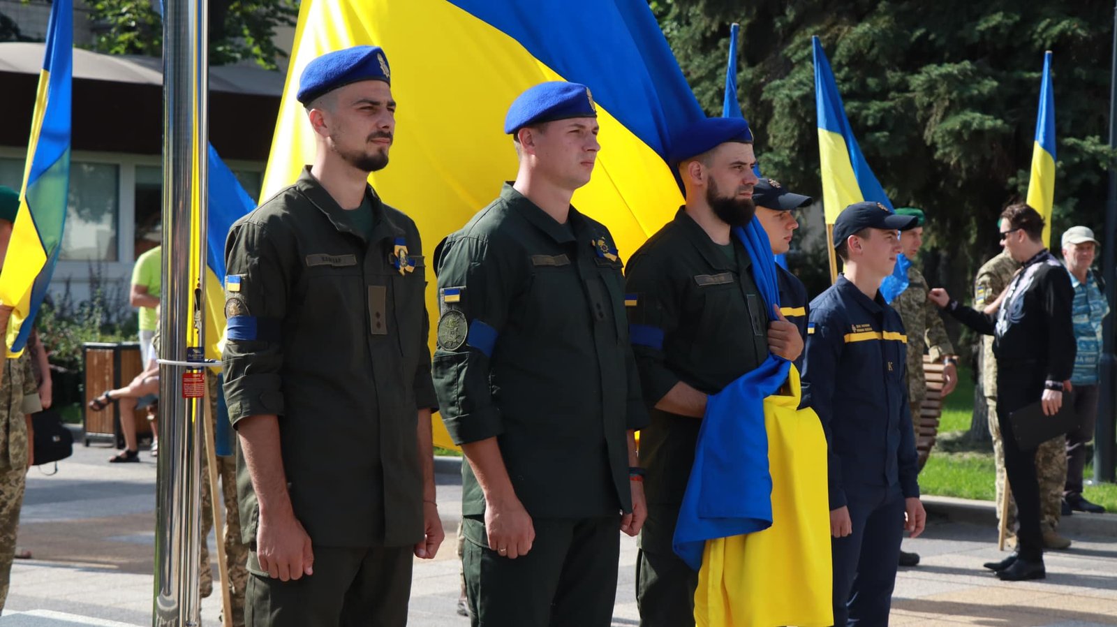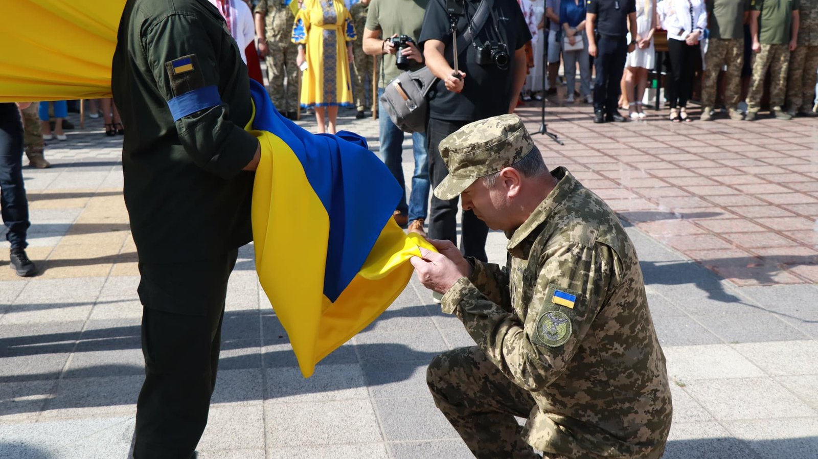 “Наш прапор – це вже більше, ніж просто символ. Наші воїни в ці хвилини борються за те, щоб синьо-жовті стяги майоріли над усією Україною: від сходу до заходу, від півдня до півночі. І так обов’язково буде! Сьогодні разом із військовими ми урочисто підняли Державний Прапор України у знаковому місці. Саме на площі Т.Г. Шевченка в 1990 році патріоти підняли прапор незалежної України. І тут ми обов’язково його символічно здіймемо і в день нашої Перемоги над російськими окупантами. Ми – вільні! Ми – незламні! Ми – непереможні та єдині!” – сказав посадовець.